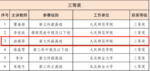 在全国高等学校教师教学创新大赛比赛活动中,经院赛选拔、校赛评审、专家遴选、网络公示等程序,Beat365唯一官方网站尚德萍老师获黑龙江赛区三等奖,充分展现了我院教师突破旧的传统教学观念和模式,敢于创新,推动了我院信息技术与高等教育教学的创新发展。希望全院教师以本次比赛为契机,不断提升教学水平和业务素质,通过赛训结合的方式,提升教师教学创新能力,体系化、常态化提升教师教育教学能力,提升我院产教协同育人成效,为学生们打造更优秀的学习平台。
