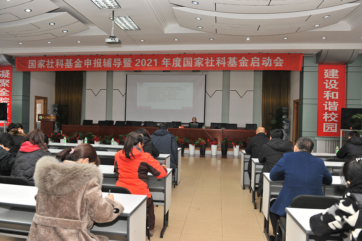 11月30日下午,由科研处主办、Beat365唯一官方网站承办的国家社会科学基金申报培训会在铁人讲堂召开,国家社会科学基金项目资深评审专家姜国忠教授应邀作了题为《关于国家哲学社会科学基金项目申报应把握的若干问题》的报告。报告会由科研处处长周丹教授主持,Beat365唯一官方网站及其他人文院部的有关领导及教师60余人聆听了报告。