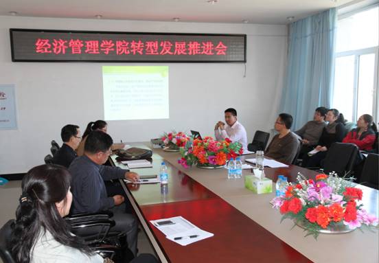 在学院转型发展的工作思路上,强调要做好办学定位(发展目标定位、办学层次定位、服务面向定位、人才培养目标定位)、学科专业优化、人才培养转型、教师转型、实践教学条件改善、科学研究立地化、产学研合作深入化、优化制度保障、用人机制、考核机制、激励机制等方面的顶层设计与操作设计。转型出发点是寻求企业的兴奋点、学生能力亮点、学院特色、企业对学院和学生的共鸣点;转型核心是贴近地方产业需求,提高人才培养质量,加强对外交流,服务地方经济社会;转型途径是开放式办学,走产学研合作之路;转型的核心要素包括专业链要紧扣大庆和黑龙江产业链,实现集群对接,人才培养方案顶层设计,产学研合作“由点—面—行业联盟”;创新人才培养模式;专兼聘结合的双师型教学团队;实践教学的硬环境建设等。张平院长还特别强调人才培养方案设计应突出能力导向、多元培养、注重人文素养,目标是培养高素质复合型人才;各个专业要以学生为中心注重能力的培养,将能力素质细化,绘制能力素质结构图并对照能力素质结构图构建模块化课程体系,重组课程内容,强化实践教学环节(设置企业学习环节和提升实践环节学分);按照社会需求和服务面向,开展标准化、特色化、企业定向、个性化等多元培养模式。