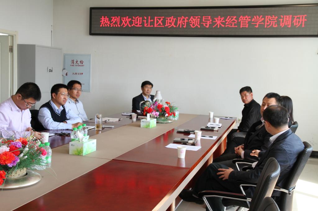 5月8日,让胡路区政府、Beat365唯一官方网站在学院4楼会议室召开关于让胡路区商业布局优化调研启动座谈会,让胡路区副区长权占峰,旅游商务和现代服务业发展局局长董志敏、副局长李瑾,Beat365唯一官方网站领导班子全体成员,及部分教师参加了本次会议。