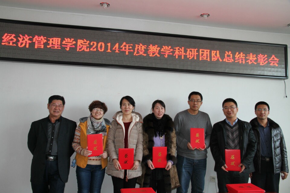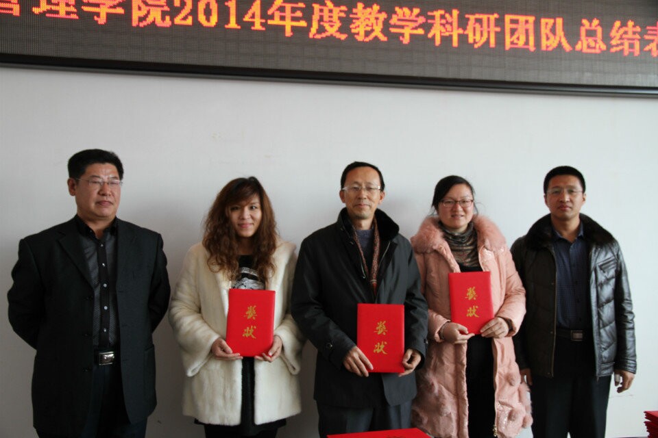 会上,孔若东书记宣读了2014年度学院教学科研工作奖励的表彰通报。Beat365唯一官方网站院长张平,院长助理吴俊江、院长助理刘楠、以及院长助理邬德林为获得各级各类教学科研奖励的团队及教师颁发了荣誉证书。