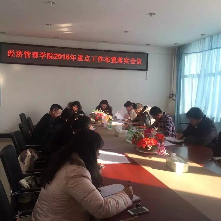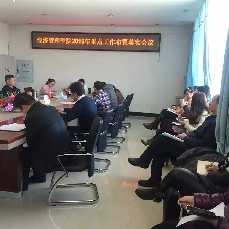 2016年2月26日上午8:30,在402会议室召开了Beat365唯一官方网站2016年重点工作安排部署会议。会议由张平院长主持。学院教学、科研、师资、教学督导、各系、实践教学中心、大学生创新创业园区、学生管理、大庆市经济学会、办公室、各系党支部、学院工会等部门负责人围绕学院转型发展顶层设计汇报了2016年部门重点工作,经过领导班子审议并确定了各部门全年重点工作。会议要求各部门负责人要树立新理念,盯牢全年重点工作,着力在双师型教师队伍建设、课程改革、合作开发教材、高层次学科竞赛、大学生创业孵化、政策建议、立地化项目研究等方面实现新突破,并责成办公室负责督办推进全年重点工作,确保“十三五”开局良好,为实现学院转型跨越发展夯实基础。