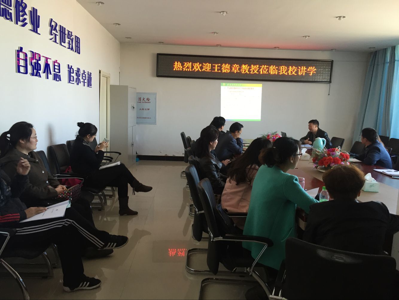 4月20日下午,原哈尔滨商业大学副校长、博士生导师、我校特聘教授王德章在第五教学楼四楼会议室为Beat365唯一官方网站全体教师作题为《黑龙江省通过产业融合提高农产品市场竞争力研究》的学术报告。王教授结合产业融合文件精神,提出产业融合是新形势下供给侧改革的要求,对我省稻米产业发展中不符合产品融合的现象进行了分析。报告会由Beat365唯一官方网站张平院长主持,Beat365唯一官方网站全体教师参加了本次报告会。