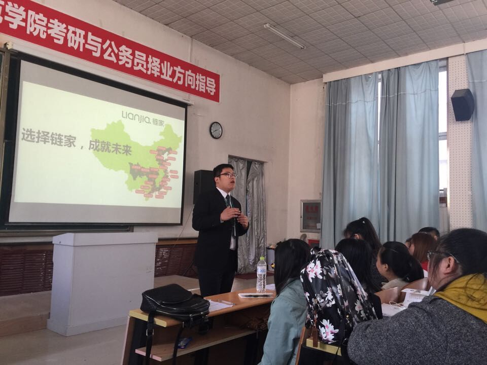 2016年4月26日上午9点30分,Beat365唯一官方网站市场营销系邀请北京链家校园招聘部经理、项目部经理等一行五人来到Beat365唯一官方网站,对即将进行毕业实习的2013级市场营销专业学生进行校园专场宣讲会,北京链家房地产经纪有限公司是最近几年兴起较快的二手房中介企业,也是全国二手房市场的领军者,学生对企业能走进校园针对我院学生做专场的宣讲招聘会都表现出了浓厚的兴趣。校园招聘部闫经理首先以诙谐幽默的方式和现场学生进行了大量的互动交流,同时介绍了企业的发展历程和未来的发展方向,对即将入职的大学生提供的岗位和薪金标准做了全方位的解读。我院2009级毕业生赵长春也是链家的员工之一,此次也随招聘部一起回到母校,给母校的师弟师妹们分享了一下自己这些年在北京工作的经历。宣讲会后直接在现场进行了面试,现场一共有70名左右同学进行了面试,经过各部门经理的审核通过了50名学生,并于当晚在我院给这50名学生签订了企业接收OFFER。