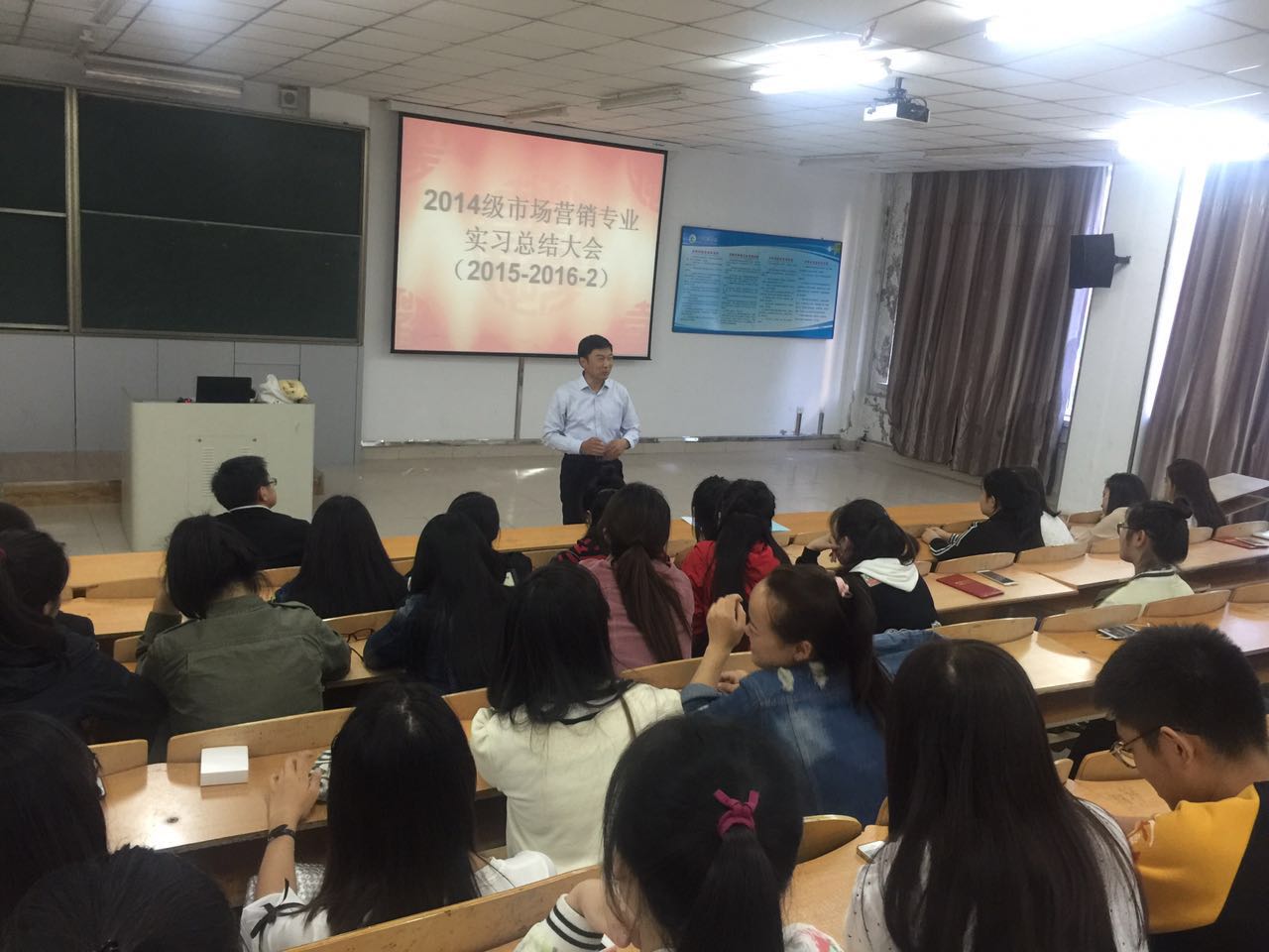 2016年9月21日下午14:30,Beat365唯一官方网站市场营销系在主楼1-4教室举行了“2014级专业见习总结大会”,Beat365唯一官方网站孔若东书记、市场营销系于珊珊、孙伟仁老师参加了大会,会议由市场营销系主任尚德萍主持。