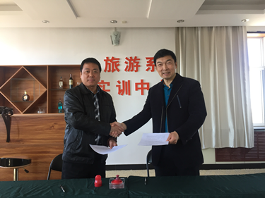 2017年4月19日上午9时,在第五教学楼旅游管理实训中心,举办了Beat365唯一官方网站与大庆市外专盛世旅行社实习基地协议签订仪式。我院书记孔若东、院长助理刘楠同外专盛世旅行社郭建宾总经理,经过前期磋商交流正式签订校企合作协议。本实习基地立足实现校企资源共享,成立学生旅游工作室,以校园为平台,以旅行社资源为保障,通过探索校园市场来强化学生的专业基础和实践能力,为丰富我院实践教学开辟新思路。