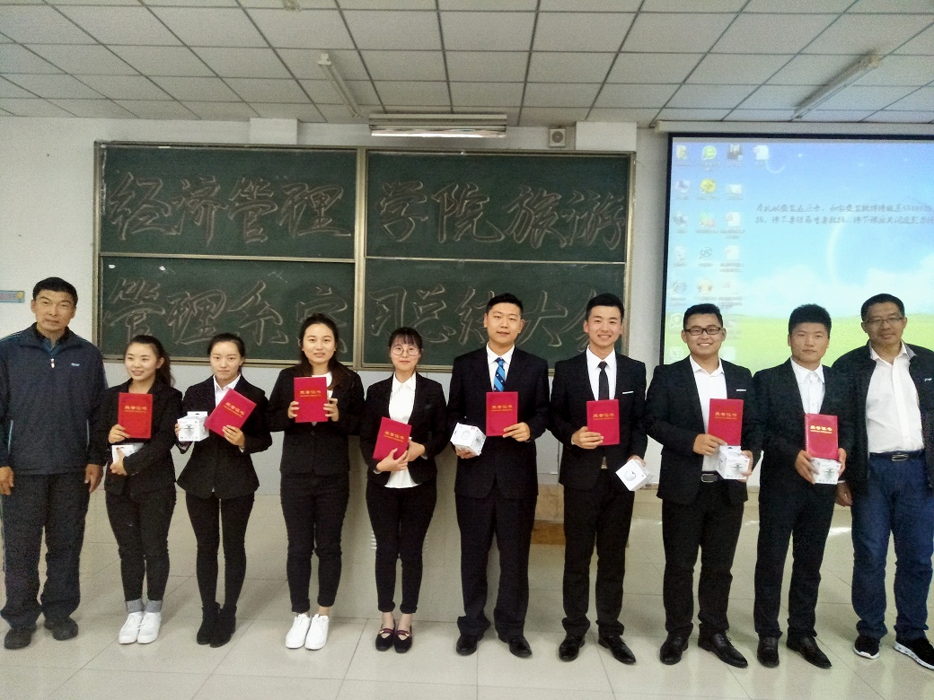 会上,车主任对此次实习做了简要的总结,明确了各个实习单位和实习计划时间表,并展示了部分同学所获得的表扬信。随后,每个实习单位小组派代表讲话,以PPT演讲的方式,围绕实习工作和生活,给同学们和2016级的学弟学妹们分享了自己的心得体会和经验。各小组讲话都十分精彩,真实的表达了自己对于实习的感悟。接下来,则是对8位优秀实习生代表进行嘉奖,酒店管理专业5名,旅游管理专业3名,鼓励各位同学再接再厉,越来越优秀。最后刘楠院长就此次总结大会发表讲话,衷心的感谢车鑫老师和历届学长学姐们为后来的同学们搭建的实习平台,对实习生代表的讲话提出表扬,并给同学们提出建议,希望同学们能明确目标,注意职业目标的选择。孔若东书记同样表达了对于实习生们的赞美,也希望同学们能够珍惜机会,提高自己的能力。