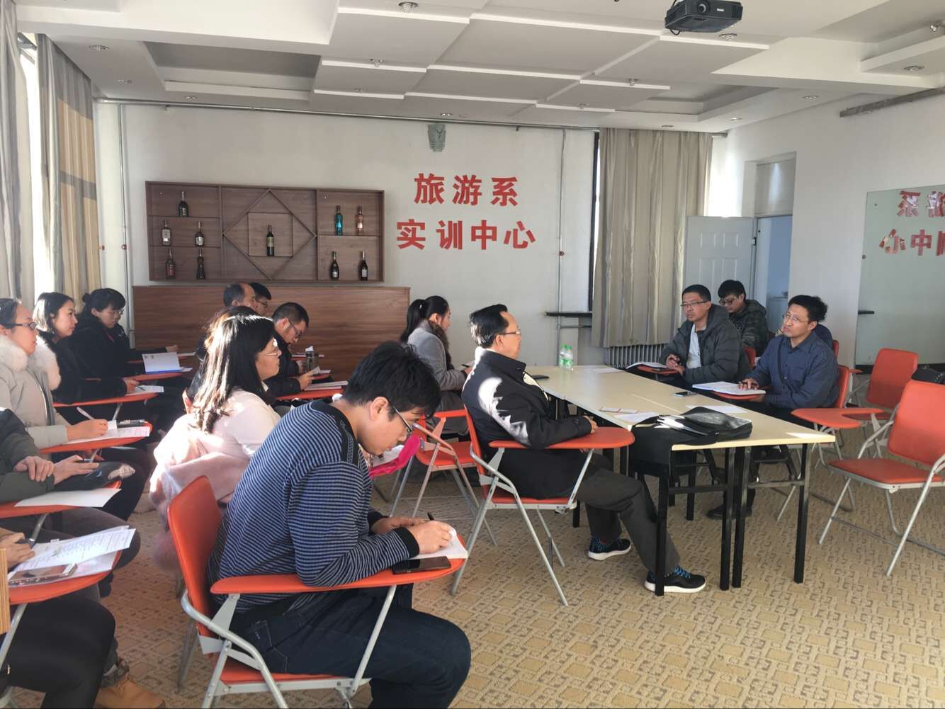 首先,教师代表田泽民老师、薛丹老师、徐珉钰老师、王剑老师、车鑫老师、金熙成老师等结合期中教学质量检查听课学习情况和目前课堂教学、教学管理、学生状态等情况进行发言,对于院级观摩课王植荔老师、杨晓玉老师、尚德萍老师、车鑫老师四位老师的授课风格、课堂管理、教学方法、教学态度等给予了高度评价,表示四位老师授课各有特色,但却都能够在课堂上游刃有余,展现出自身的教学魅力,牢牢掌控课堂、牢牢抓住学生,学生参与度和互动程度都非常好,非常值得借鉴和学习,同时,各位老师提出在今后授课过程中的改进和完善方面,如,通过挂职锻炼等方式不断提高自己的实践能力和水平,进一步提升教学水平;推广云班课信息化教学,从课堂的“管”到课堂的“理”,提升学生参与度和主动学习的兴趣;有条件的情况下建议能够小班授课,提升教学效果;有些课程与资格证书内容相符的或是相关的,教师在课堂应该主动进行传授和引导等。