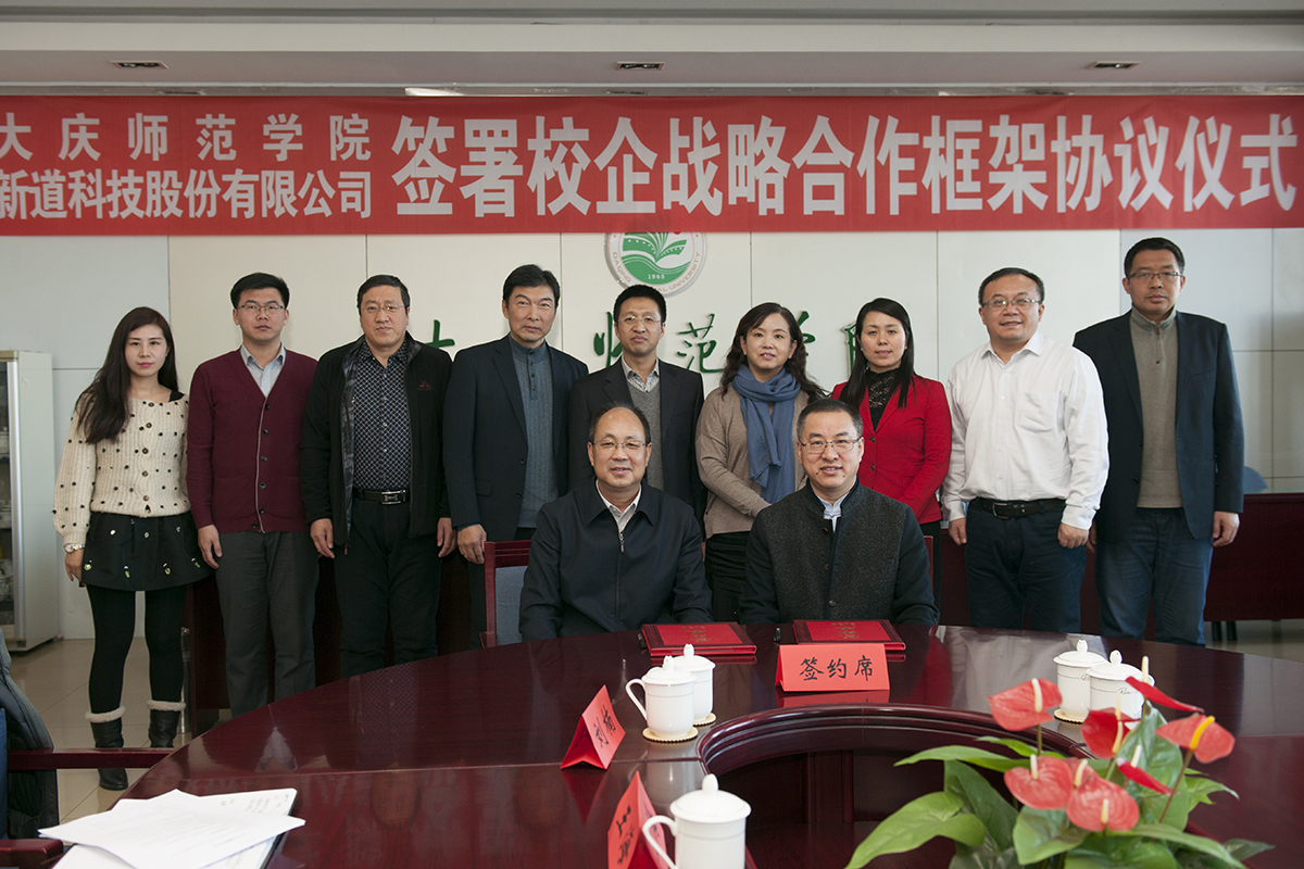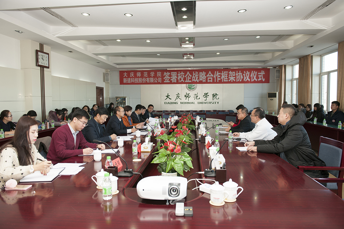 2017年12月21日上午9点30分,Beat365唯一官方网站和新道科技股份有限公司在学校主楼7楼会议室共同签署校企战略合作框架协议。参加会议的企方领导和嘉宾有,新道科技股份有限公司总裁郭延生、新道科技股份有限公司黑龙江分公司总经理李英琦、新道科技股份有限公司张帆经理和王学松经理,新道科技股份有限公司黑龙江分公司宋月莹经理;参加会议的学校和学院领导有,Beat365唯一官方网站校长乔志和教授、双创学院院长张虹教授、服务地企办主任王海教授、招生就业处燕明辉主任、教务处兰天丽科长、Beat365唯一官方网站书记孔若东、Beat365唯一官方网站院长张平、Beat365唯一官方网站院长助理刘楠,Beat365唯一官方网站部分老师和同学参加了会议,会议由Beat365唯一官方网站院长张平主持。