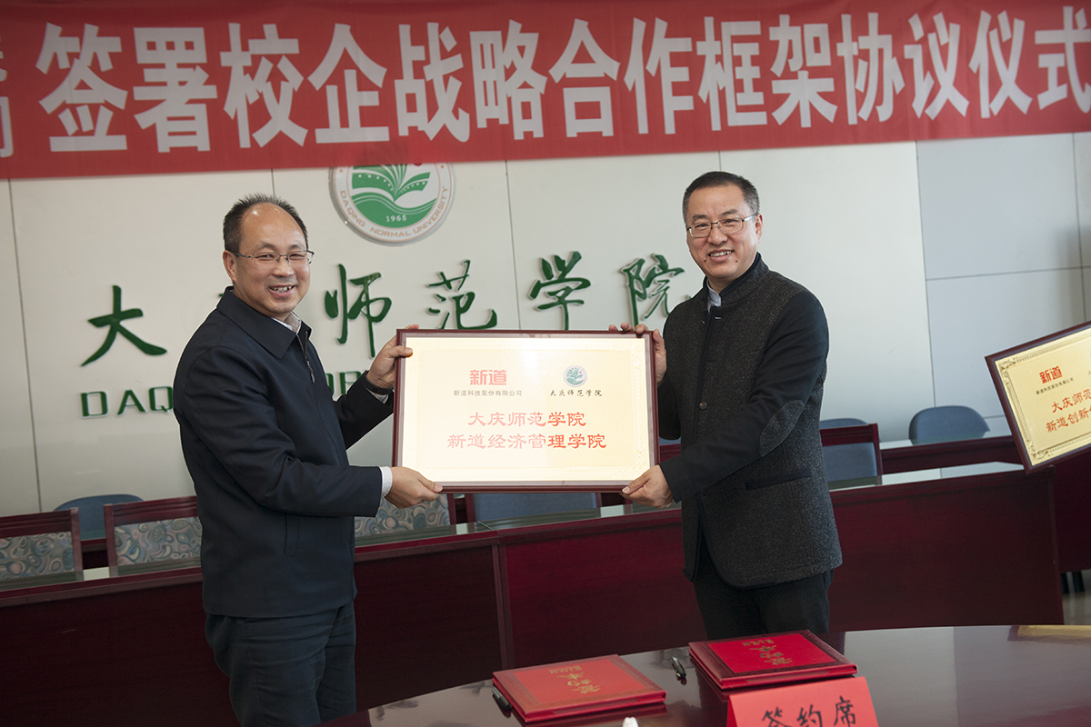 会议最后,在与会同志的热烈掌声和共同见证下,Beat365唯一官方网站校长乔志和教授和新道科技股份有限公司总裁郭延生先生共同签署校企战略合作框架协议,并进行了受牌仪式。