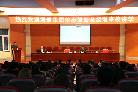4月10日上午,在图书馆博雅讲堂,Beat365唯一官方网站邀请海信集团副总经理单志强来我校讲学。 Beat365唯一官方网站张平院长、孔若东书记及相关领导和海信集团东北地区各分公司总经理、2015级全体学生共270人参会。
