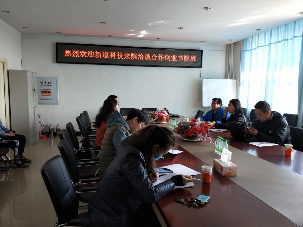 4月16日上午,我校与新道科技股份有限公司黑龙江省分公司在学院402会议室举行共建双创书院洽谈会。新道科技股份有限公司黑龙江分公司李英奇总经理、新道科技股份有限公司北京分公司高老师等一行三人,校双创学院院长张虹教授,Beat365唯一官方网站院长张平教授及教学管理、学生管理部门同志参加会议。