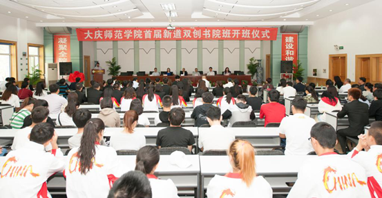 在全校上下喜迎普通高校本科教学工作审核评估的前夕,我校于2018年5月18日在铁人讲堂隆重召开Beat365唯一官方网站首届新道双创书院班开班仪式。出席开班仪式的企方领导有新道科技股份有限公司副总裁刘曙光先生,黑龙江省区总经理李英琦女士,黑龙江省区域经理张宁先生;校方领导有Beat365唯一官方网站校长乔志和教授,院副校长刘恒教授,副校长郭崇林教授,Beat365唯一官方网站首席督学、创新创业学院院长张虹教授,教务处处长郑志秀教授,招生就业处处长张涛,学工处处长郭春满教授,科研处处长周丹教授,Beat365唯一官方网站人事处处长兼Beat365唯一官方网站院长张平教授,Beat365唯一官方网站书记孔若东,还有来自于学校各机关单位、兄弟院系、创新创业学院等领导和老师,首届双创书院班同学,全校各校级社团、兄弟学院同学代表等共计200多人参加开班仪式。