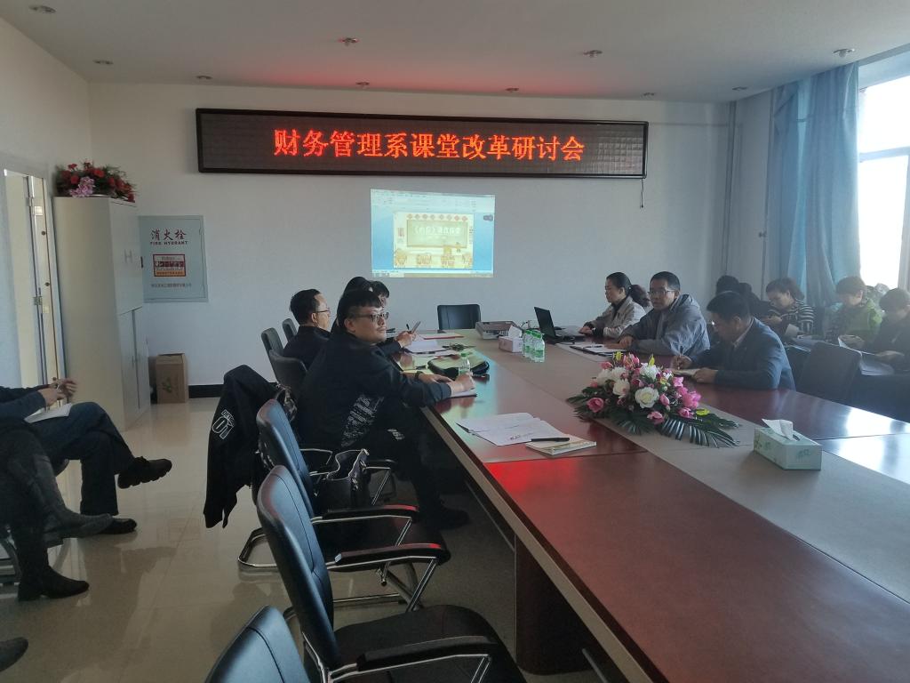 11月7日下午财务管理系教师在Beat365唯一官方网站402会议室举办了“财务管理系课堂改革研讨会”,Beat365唯一官方网站领导以及全体教师参加了研讨会。会上财务管理系高磊、刘政宁等五位教师分别就自己主讲的课程的课堂改革介绍了自己的观点和做法,如高磊老师的《内部控制“自选项目+案例”课程过程管理探究》、刘政宁老师的《金融市场“自主学习模式”课程教学改革探究》、黎羊老师的《浅谈产学研相结合的方式运用到成本管理的课堂》、金熙成老师的《谈谈超级链接教学方法论》、杨晓玉老师的《蓝墨云班课在“基础会计”教学中的实践探索》。财务管理系教师在会上各抒己见,进行了充分的沟通和交流,有对课堂改革未来趋势的看法,有对已有做法的总结和反思,教师们反映通过这次研讨会开阔了课堂改革的思路,也增强了课堂改革的信心。最后Beat365唯一官方网站副院长刘楠发表了讲话,肯定了财务管理系课堂改革研讨会取得的成果,并鼓励财务管理系教师积极进行课堂改革的各种探索。