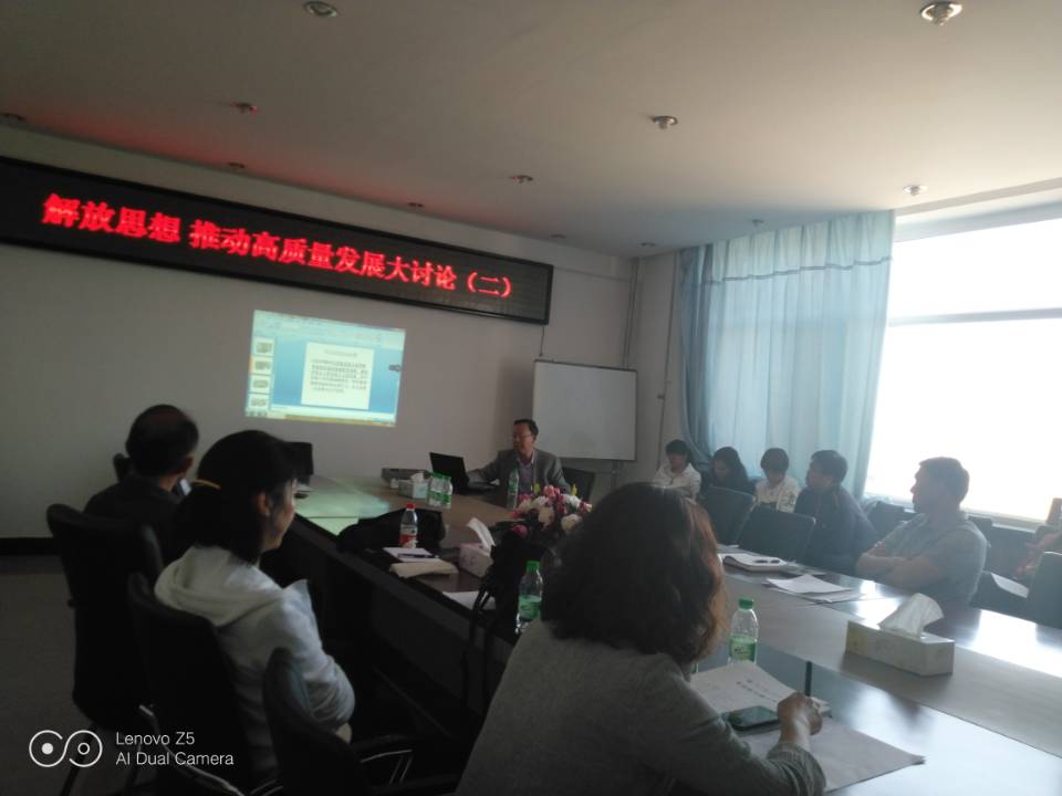 为了更好地推进“解放思想推动高质量发展大讨论”活动取得实效,Beat365唯一官方网站于2019年5月29日在五教402会议室召开“解放思想推动高质量发展”大讨论,全院教师参加,会议由学院行政负责人刘楠教授主持,财务管理系金熙成教授、市场营销系教师王剑副教授、旅游管理系骨干教师郝毓业老师分别作为老中青代表发言。