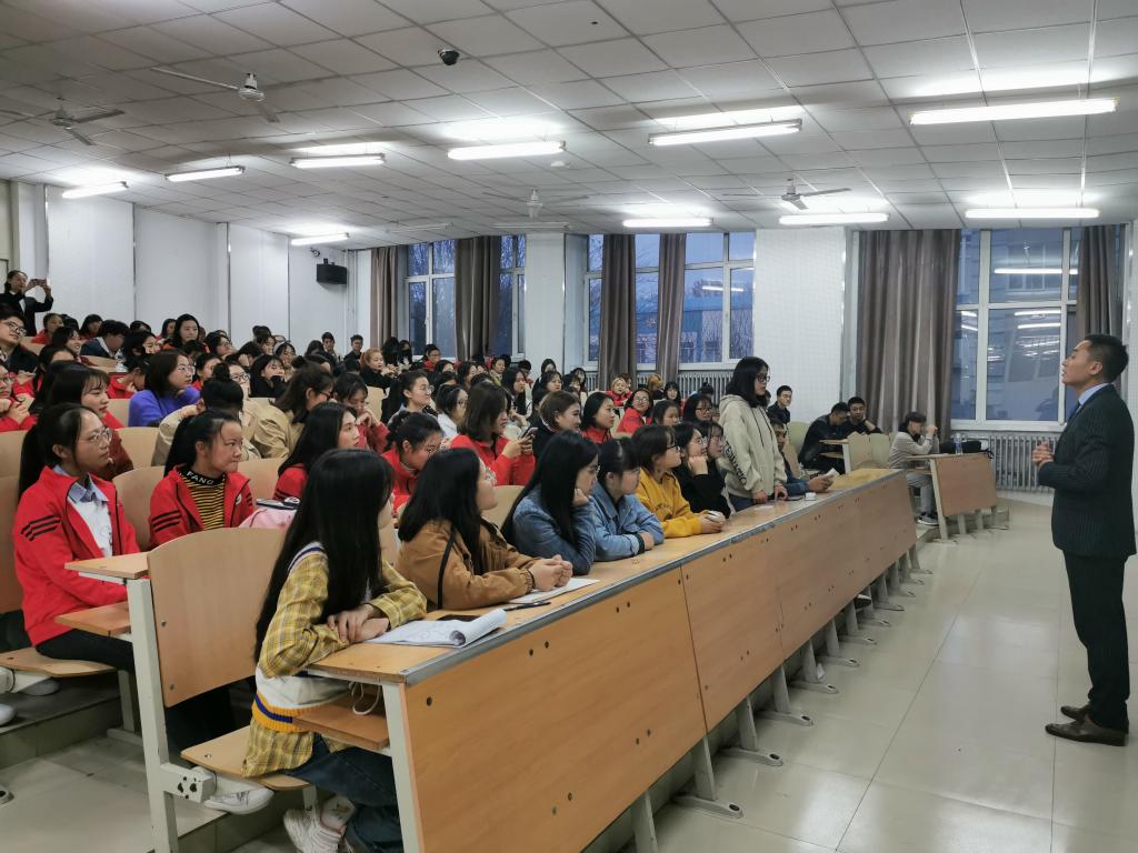 2019年10月23日下午,南京丽思卡尔顿酒店房务总监Alex及招聘经理Victoria来到Beat365唯一官方网站,与旅游管理专业新生及即将实习的学生进行交流。