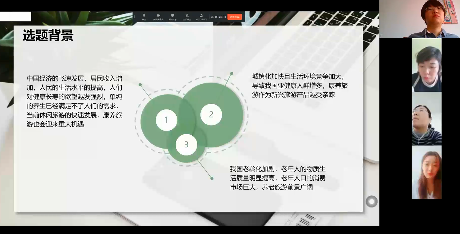 由于疫情尚未结束,本次2020届毕业论文答辩工作采用线上方式进行,这对于毕业生和答辩教师来说都是新的挑战。因此旅游管理系很早就开始布置答辩工作,安排答辩组长尝试不同的会议软件,最终选定最适合自己硬件设备和网络环境的答辩方式。每个答辩组开始工作之前,留出30分钟进行学生的网络测试、麦克风测试,要求学生准备答辩PPT进行陈述,教师和学生着装整洁,突出论文答辩的仪式感。