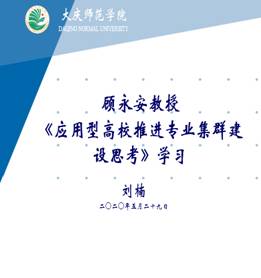 刘楠院长结合“双论证”工作和学院“十四五”发展,结合学院和专业实际,认真组织学习、领会和分析了顾永安教授的这篇文章。重点学习了专业集群内涵认识、系统性认识、认识视野、建设目标、顶层设计、特色优势等方面存在的不足和表现;重点分析了确立学科专业集群超级平台思维、确立基于学科交叉融合的多研究视角、确立专业集群的内涵式发展思维、重构专业集群对接产业集群的专业发展链条、重订集群内各专业人才培养方案、重组专业集群应用型课程体系、将专业集群打造成办学特色、提升专业集群服务地方支撑度和提升专业集群人才培养契合度等方面。