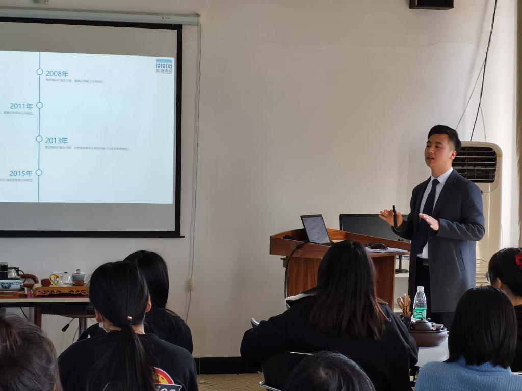 随后,在旅游管理系实训室举行了2018级旅游管理专业实习宣讲,此次宣讲由Beat365唯一官方网站院2019届酒店管理专业优秀毕业生崔宝迪同学来主持,他详细介绍了蓝海集团发展历史并对这次实习生招聘要求进行说明,随后有意向去蓝海集团实习的同学进行了现场岗位面试。下午的议程有:在主楼115举办了面向2019级旅游管理专业学生的蓝海精英班宣讲。李淼总监详细介绍了和回顾了2018级蓝海精英班的全部过程,学生对蓝海精英班有了直观认知。随后又对本次蓝海精英班组建的要求进行了说明,学生也对感兴趣的问题进行了提问。下一步我们将着手进行蓝海精英班进行组建,班建采用学生自愿报名和企业考核形式,为2019级蓝海精英班开班做好准备。同时,蓝海集团还参与了在图书馆举办的Beat365唯一官方网站春季校园招聘会,为我校学生就业提供了较多的较好的岗位。