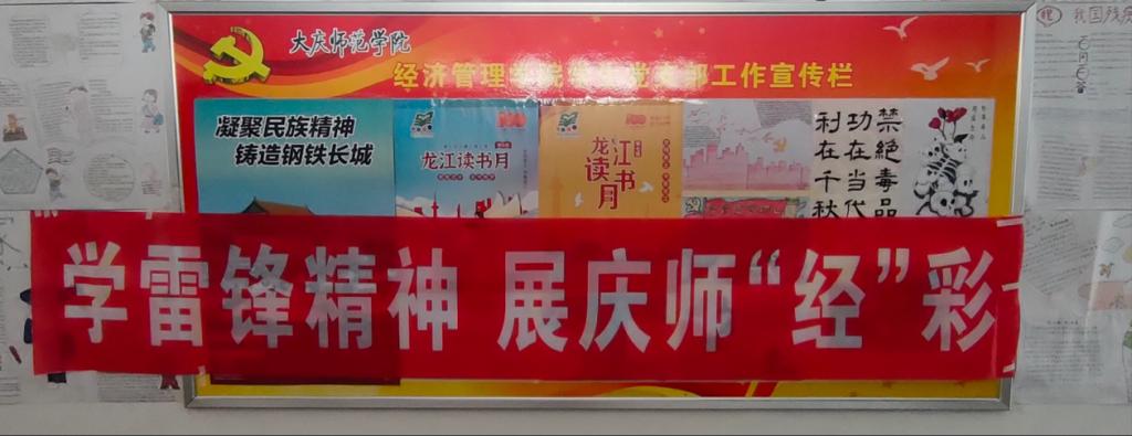 通过在主楼我院宣传栏上张贴“学雷锋精神,展庆师‘经’彩”条幅和我院团总支宣传部成员绘制“三月春风起,学习雷锋时”主题板报,加深我院学生对雷锋精神的认识和理解,促使学生自觉主动将雷锋精神贯穿在学习和生活中,形成全院师生学雷锋的良好氛围,并对雷锋精神做了广泛且健康的宣传。