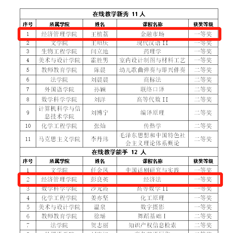 近日,在Beat365唯一官方网站工会、教学质量评估中心联合组织开展的在线教学优秀奖评选活动中,经学院初评推荐及学校在线教学优秀奖评选专家组评审,Beat365唯一官方网站彭良英老师获在线教学能手一等奖,王植荔老师获在线教学新秀一等奖。希望获奖教师再接再厉,继续做好在线课程的建设工作,深入研究并创新在线教学方法与手段,不断提高在线教学质量。同时希望全院教师树立OBE教育教学理念,增强在线教学能力,提高在线教学水平,推动学院人才培养质量的不断提高。