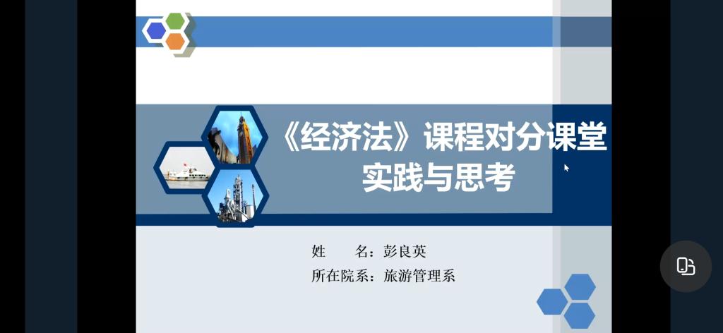 最后,由在线教学能手彭良英老师介绍《经济法》课程对分课堂的实践与思考,对课前、课中、课后如何进行组织教学都进行了简明扼要的阐述;然后由在线教学新秀王植荔老师分享教学新秀比赛的心得,并展示金融投资实战平台在教学中起到的重要作用。