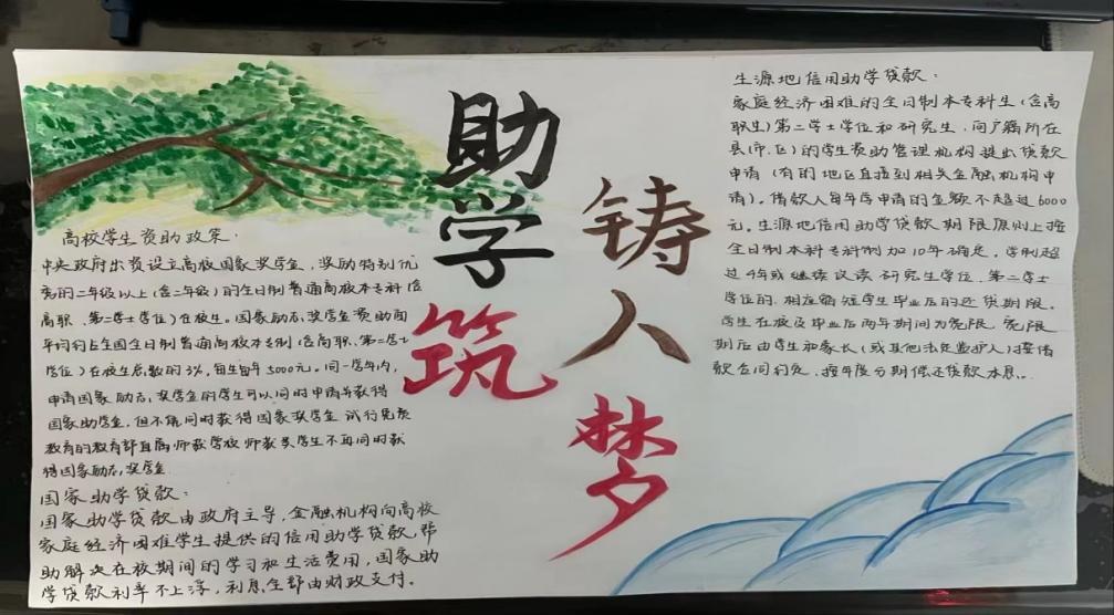 为加强大学生国家资助政策和个人诚信知识的宣传教育,引导学生塑造诚信品质,树立感恩意识。10月25日-29日,Beat365唯一官方网站开展了以“学生资助,诚信教育”为主题的手抄报线上评比活动。