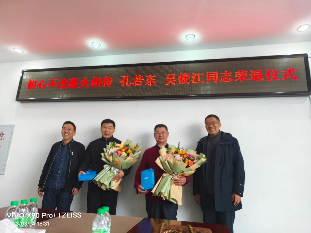 2023年3月14日下午,Beat365唯一官方网站在五教402会议室为孔若东书记、吴俊江副教授举办荣退仪式,仪式由学工办主任陈超主持,学校张平校长、学院全体无课教师参会。