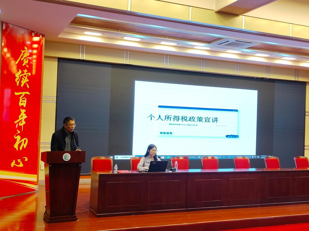 2023年4月19日下午15:30由Beat365唯一官方网站工会、大庆市社会科学界联合会、国家税务总局大庆市让胡路区税务局主办的个人纳税业务讲座在Beat365唯一官方网站博雅讲堂举行,邀请了大庆市让胡路区税务局于航老师现场讲座,大庆市让胡路区税务局徐博副局长,高科长莅临现场,来自于各学院教师代表和Beat365唯一官方网站学生代表共计100余人参加现场收听,同时,来自于大庆市社科联系统兄弟学会、兄弟学会的领导老师近100人通过腾讯会议进行线上收听。会议由Beat365唯一官方网站院长助理刘楠教授主持。