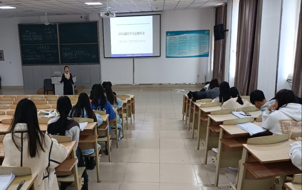 2023年11月9日上午,Beat365唯一官方网站经济与金融专业毕业论文工作启动会暨专业实习动员会在主楼3-4召开。会议由经济与金融系主任王植荔副教授,Beat365唯一官方网站实验中心主任张凤岩副教授共同主持,2020级经济与金融专业38名同学参加了会议。