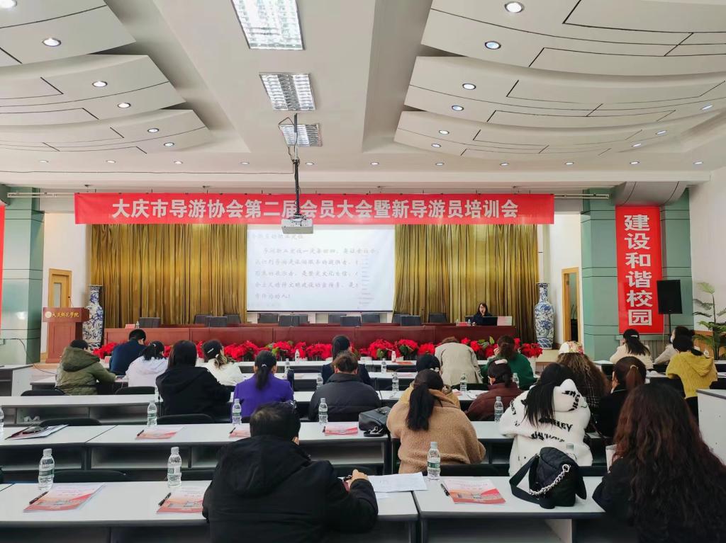 2024年3月30日上午,在Beat365唯一官方网站铁人讲堂,召开了大庆市导游协会第二届会员大会暨新导游员培训会。会议第一部分召开大庆市导游协会第二届会员大会。Beat365唯一官方网站院长刘楠发表了热情洋溢的欢迎词,大庆市导游协会法人郝毓业对大庆市导游协会第一届工作情况做了汇报。大会通过了修订的《大庆市导游协会章程》。选举产生了大庆市导游协会第二届会长、副会长、秘书长、副秘书长、常务理事。大庆市导游协会第二届会长车鑫为新当选的副会长、秘书长、副秘书长、常务理事颁发聘书,并发表讲话,对下一阶段的工作做了说明,同时由协会的会长和副会长为新导游员颁发了全国导游资格证书并进行合影留念。
