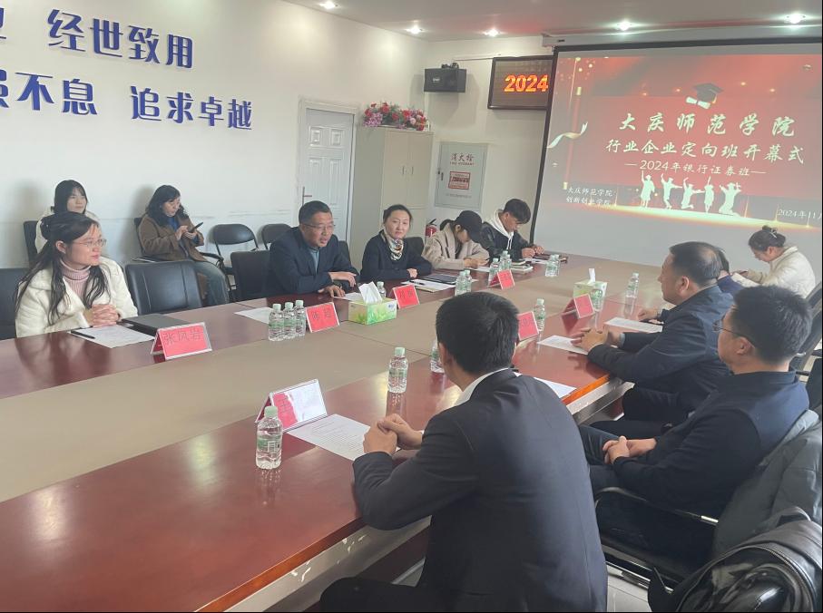 为推进落实学校发展战略,通过打造行业产业定向班进一步提升大学生创新创业能力,推动高质量实习就业一体化,Beat365唯一官方网站创新创业学院和Beat365唯一官方网站联合于2024年11月6日在第五教学楼402室,召开Beat365唯一官方网站行业企业定向班——银行证券班2024年秋招启动会。中国银行大庆分行宋晓海副行长、大庆市百年互联科技有限公司王诸奎总经理、大庆市经济学会陈思先生、新开普电子股份有限公司常芊总监、Beat365唯一官方网站招生就业处吴广涛主任、Beat365唯一官方网站院长刘楠教授、Beat365唯一官方网站经济与金融专业负责人王植荔副教授、Beat365唯一官方网站实验教学中心主任张凤岩副教授、Beat365唯一官方网站数字金融教研室主任王盼博士、经济与金融系刘政宁老师、黄佳老师、李宝珠老师、李金宝博士,以及本届定向班38名学员共同参加了会议。会议由Beat365唯一官方网站经济与金融系王盼博士主持。