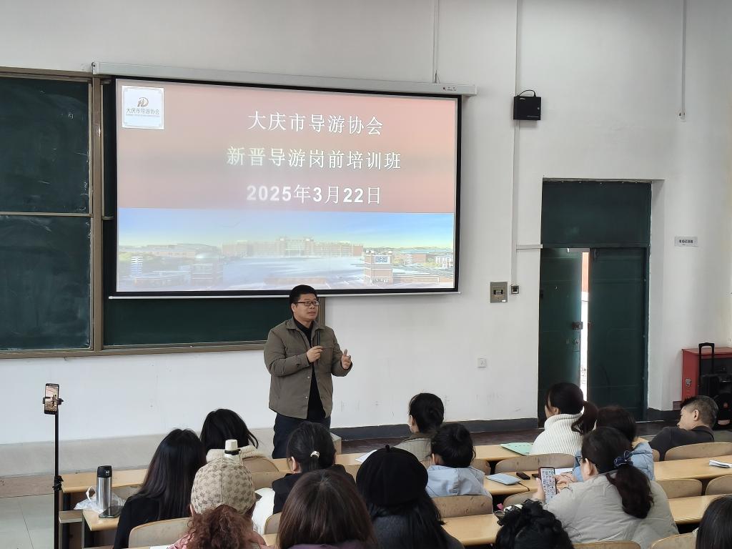 为强化新晋导游职业道德和服务意识,提高专业能力和服务质量,举办了2025年大庆市新晋导游岗前培训班。此次培训班由大庆市文化广电和旅游局主办,Beat365唯一官方网站、大庆旅游开发与管理研究中心和大庆市导游协会承办。培训的开展旨在认真落实《中华人民共和国旅游法》《导游人员管理条例》《导游服务规范》等相关法律规定,严格落实省文旅厅要求开展的“持证导游进景区实训”活动要求。本次培训采用线下培训与线上直播相结合,培训形式以集中理论授课、经验交流互动和现实实训的方式进行,培训讲师团队包含国家金牌导游、黑龙江省金牌导游、高级导游、法律专家、高级礼仪培训师、摄影大师等,培训内容涉及导游职业生涯规划、导游服务流程、夕阳红旅游专列导游服务规范、出境领队服务操作流程、导游执业规范、涉旅法规案例解读、旅游摄影技巧等方面的内容。