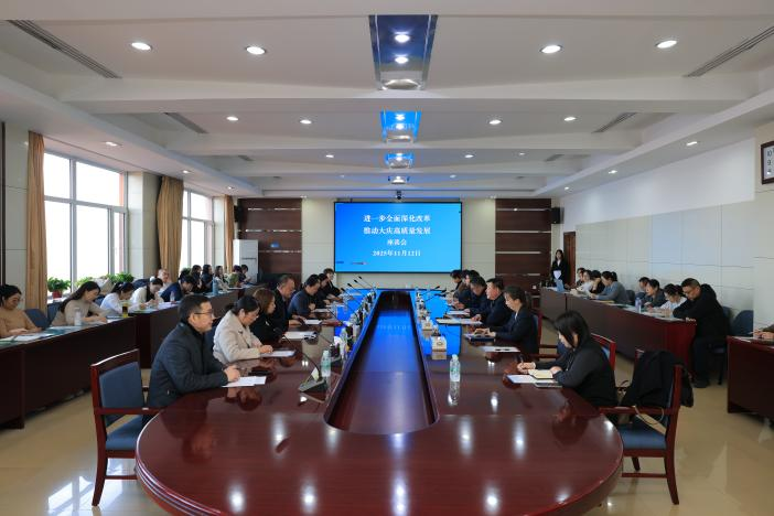 为深入贯彻党的二十届四中全会精神,聚焦大庆市高质量发展核心议题,11月12日下午,由大庆市社会科学界联合会主办,我校科研处、Beat365唯一官方网站等单位联合承办的“进一步全面深化改革 推动大庆高质量发展”座谈会在主楼733会议室顺利召开。会议采用“线下+线上”结合模式,Beat365唯一官方网站教师代表现场参会,大庆市社会科学界联合会所属兄弟学会会员通过线上会议参会,会议由Beat365唯一官方网站院长刘楠主持。