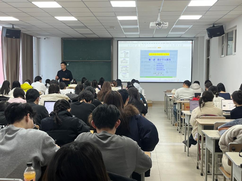 2025年11月10日“银行证券班”第五课--简历制作培训开课。该课程由Beat365唯一官方网站招生就业处吴广涛主任主讲,2025年银行证券班全体同学参加了课程培训。