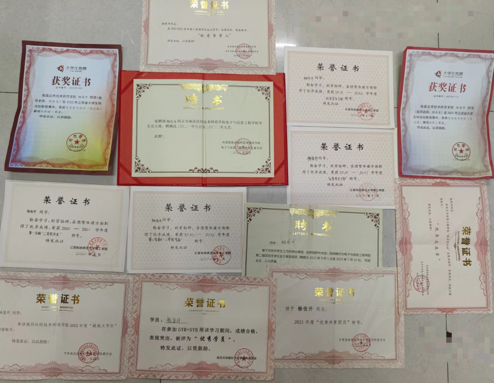 杨佳升入校以来,就选择进入学院学生会,为同学服务,为老师分忧,全面提高个人素质。在工作中,她一丝不苟,尽心尽力。在担任学院学生会主席团主席期间,她积极组织院里同学参加院内各项活动取得优秀成绩,获得“优秀学生干部”、“优秀负责人”、“最美大学生”等称号。此外,她还连续两年组织并参与了迎新工作,并担任2022届新生班助职务。在各项工作中,她一直坚信自己能,而事实也证明了她对自己的肯定。她的出色表现一直被老师们看在眼里,喜在心上。在同学们眼里,她是老师的得力助手,也是大家的知心朋友。她知道: 做好学生干部,首先是要做好学生,然后才能做好干部。学生干部不是领导学生的干部,而是在做每一项工作的时候,都把学生放在首位,应该真正做到“吃苦在前,享乐在后”。她是这样认为的,也是这样做的。她更深知“说得好不如做得好”,因此,她每一步都走得踏实,每一天都过得充实,她时刻以为同学们服务为中心,兢兢业业,一丝不苟。