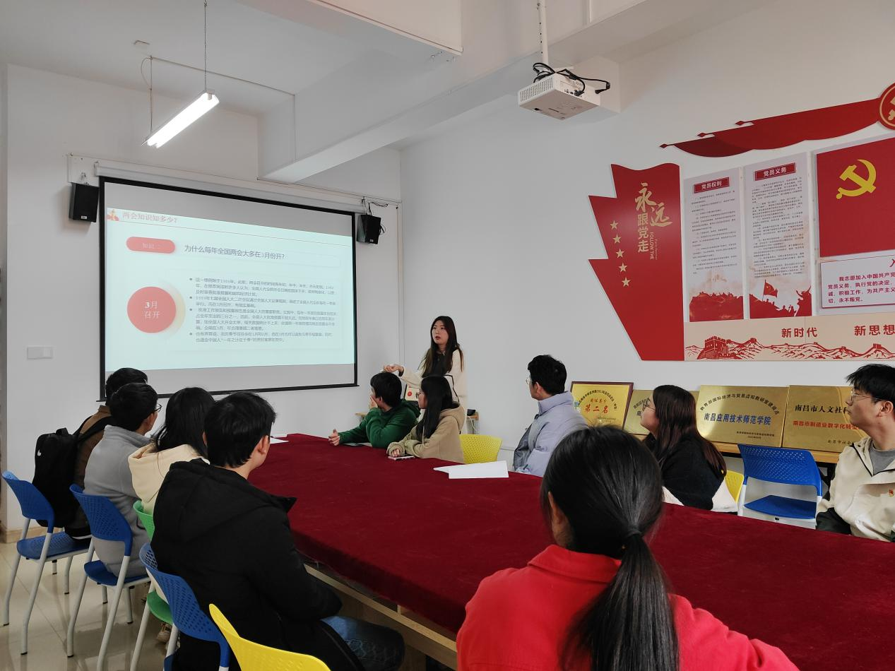 为了解2024年全国两会会议精神和会议内容,也为加强支部党员的政治理论学习和政治思想建设,350vip浦京集团官网第二党支部于2024年3月20日在1407开展了“两会知识知多少?”支部书记讲党课活动,此次党课由浦京集团官网第二党支部书记程明珠同志讲授。