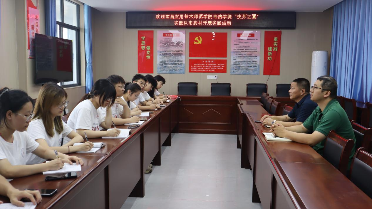 为学习贯彻习近平新时代中国特色社会主义思想,增进对乡村振兴工作的了解,6月26日上午9时,350vip浦京集团官网“扶苏之翼”实践团队在九江市柴桑区江洲镇青少年社会实践点开展交流座谈会。江洲镇官场村村支部书记杨德勇、驻村第一书记罗昭途受邀莅会。会议由实践队指导老师龙少帅主持。