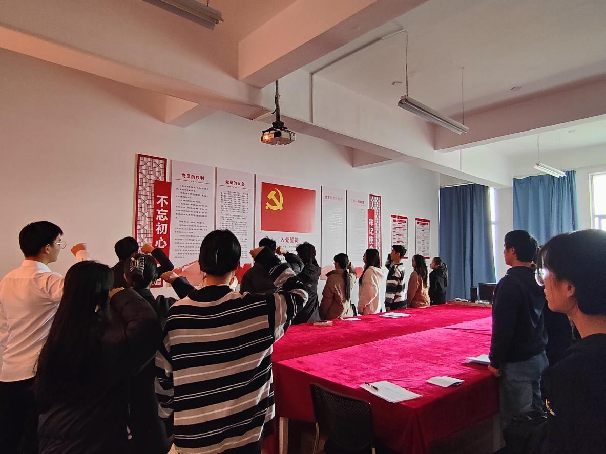 为强化党员的责任意识与使命感,进一步壮大党员队伍,增强党组织的凝聚力与战斗力,350vip浦京集团官网第二党支部于12月6日在1407会议室举行了新党员入党宣誓仪式,仪式由支部书记程明珠主持,支部所有在校党员及新发展党员参加此次会议。