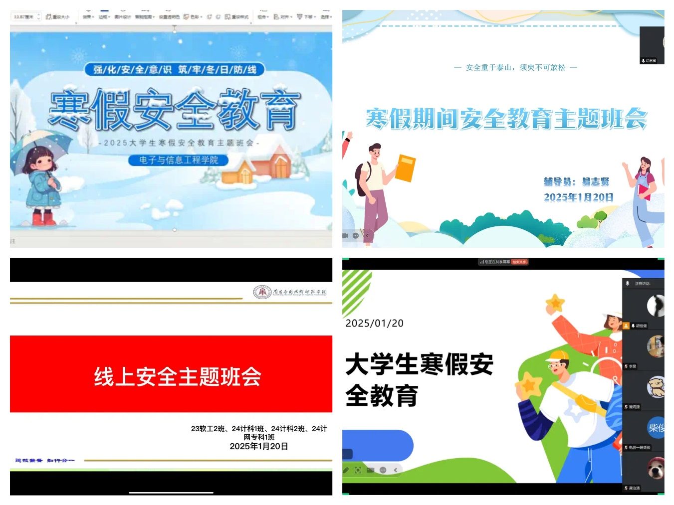 为进一步加强假期安全教育工作,提高学生的安全防范意识,时刻紧绷安全之弦,确保同学们度过一个平安、愉快的寒假。350vip浦京集团官网于2025年1月20日组织各班开展了寒假安全教育主题班会。