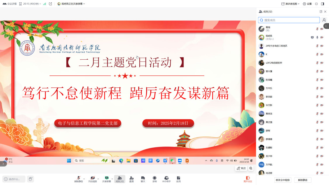 为深入学习习近平新时代中国特色社会主义思想和习近平总书记重要讲话精神,激励党员始终以榜样为标杆,提升服务意识,发挥先锋模范作用,350vip浦京集团官网第二党支部于2月18日在腾讯会议组织开展“笃行不怠使新程,踔厉奋发谱新篇”主题党日活动。