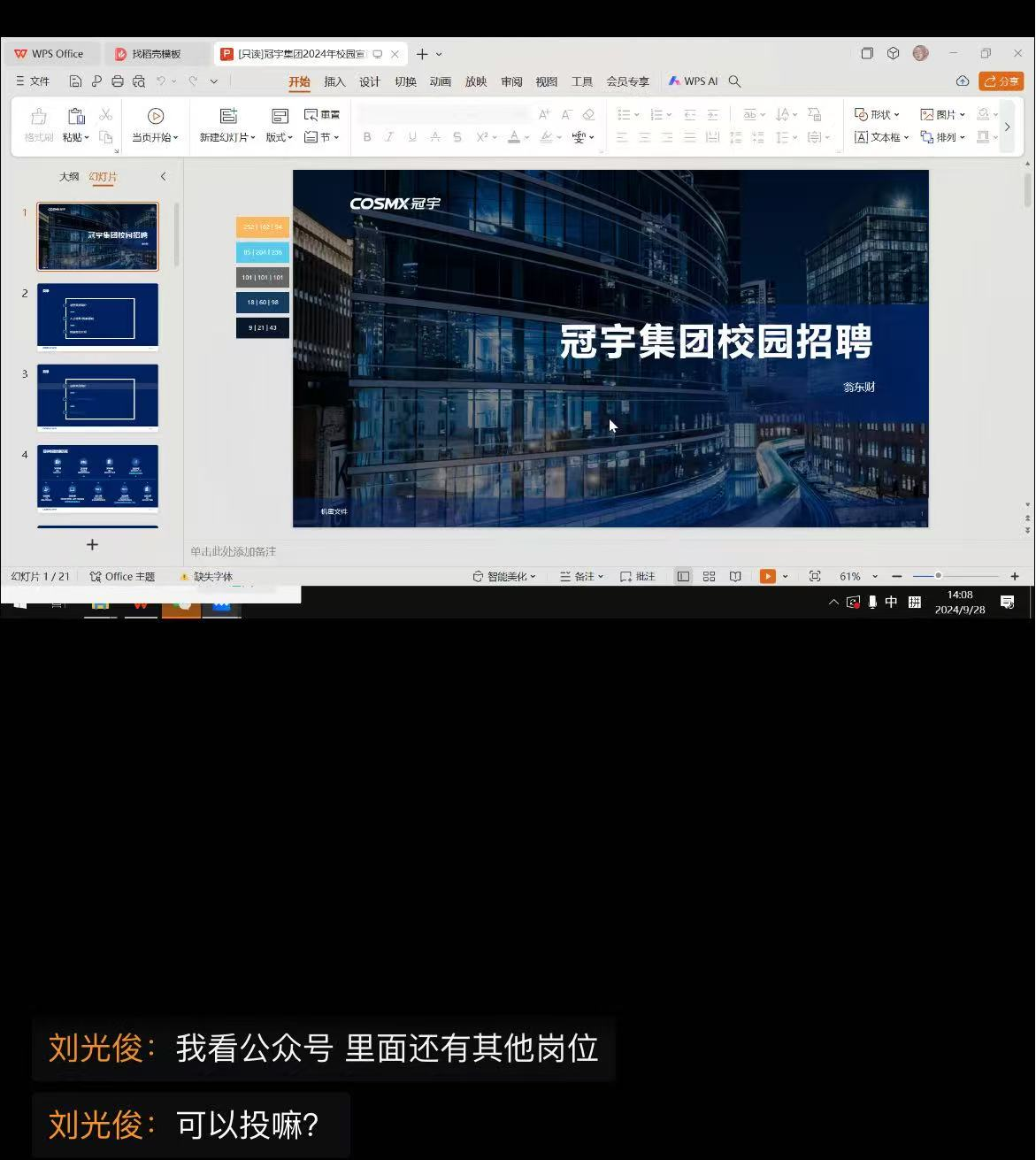 本次线上招聘会,冠宇集团针对浦京集团官网的专业特点,精心准备了一系列招聘岗位,这些岗位不仅涵盖了电子信息工程、计算机科学与技术、通信工程、软件工程等相关专业,还为毕业生们提供了广阔的发展空间和职业晋升机会。冠宇集团的招聘负责人详细介绍了公司的发展历程、企业文化、业务范围以及招聘岗位的具体要求。同时,他还分享了冠宇集团对应届毕业生的培养计划和薪酬福利体系。此外,冠宇集团还特别重视员工的职业发展,提供了技术通道和管理通道双重晋升机制,为员工的个人成长和职业发展提供了有力保障。