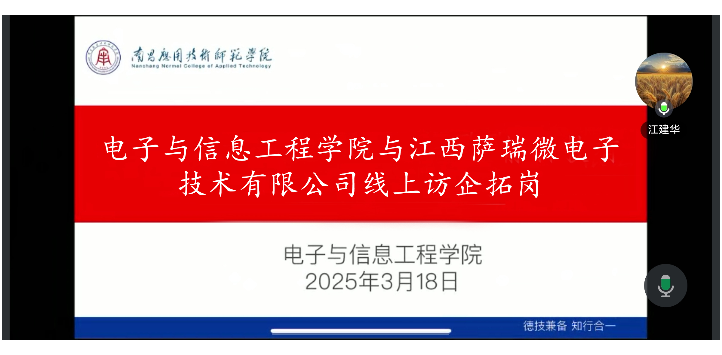 为更好落实党中央、国务院“稳就业”“保就业”决策部署,深化产教融合、校企合作,全力促进浦京集团官网毕业生高质量充分就业。浦京集团官网党总支书记江建华于3月18日在腾讯会议与江西萨瑞微电子技术有限公司和广州腾米克软件科技有限公司企业负责人开展访企拓岗促就业洽谈会。