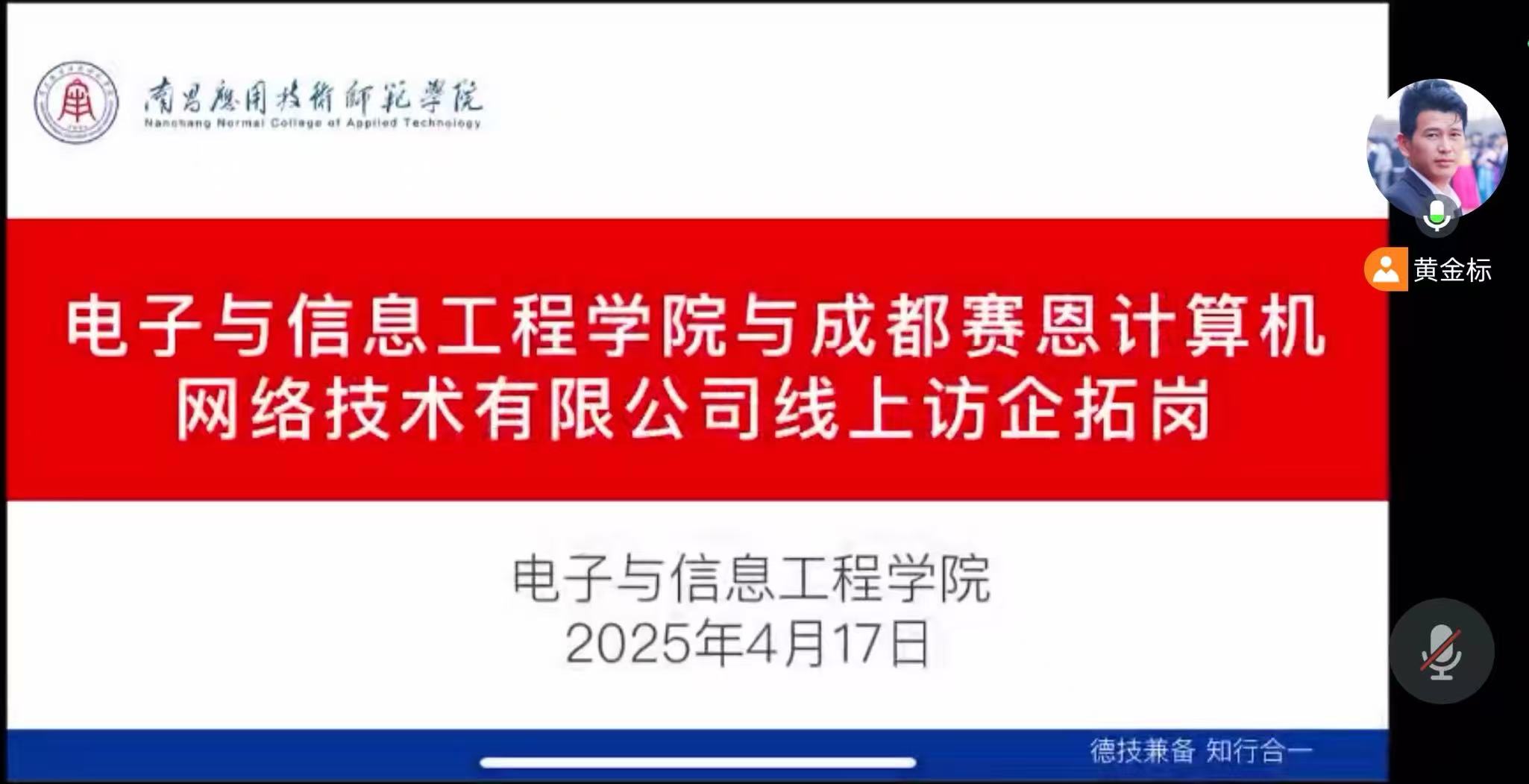 为深化产学研融合,拓宽学生就业渠道,4月17日,浦京集团官网党总支副书记黄金标与杭州喜赛乐科技有限公司、成都赛恩计算机网络技术有限公司、广州鑫谊计算机科技有限公司、义乌市曼丽贸易有限公司开展访企拓岗专项行动。此次访企旨在通过校企面对面线上交流,精准对接人才需求,推动产学研深度合作。