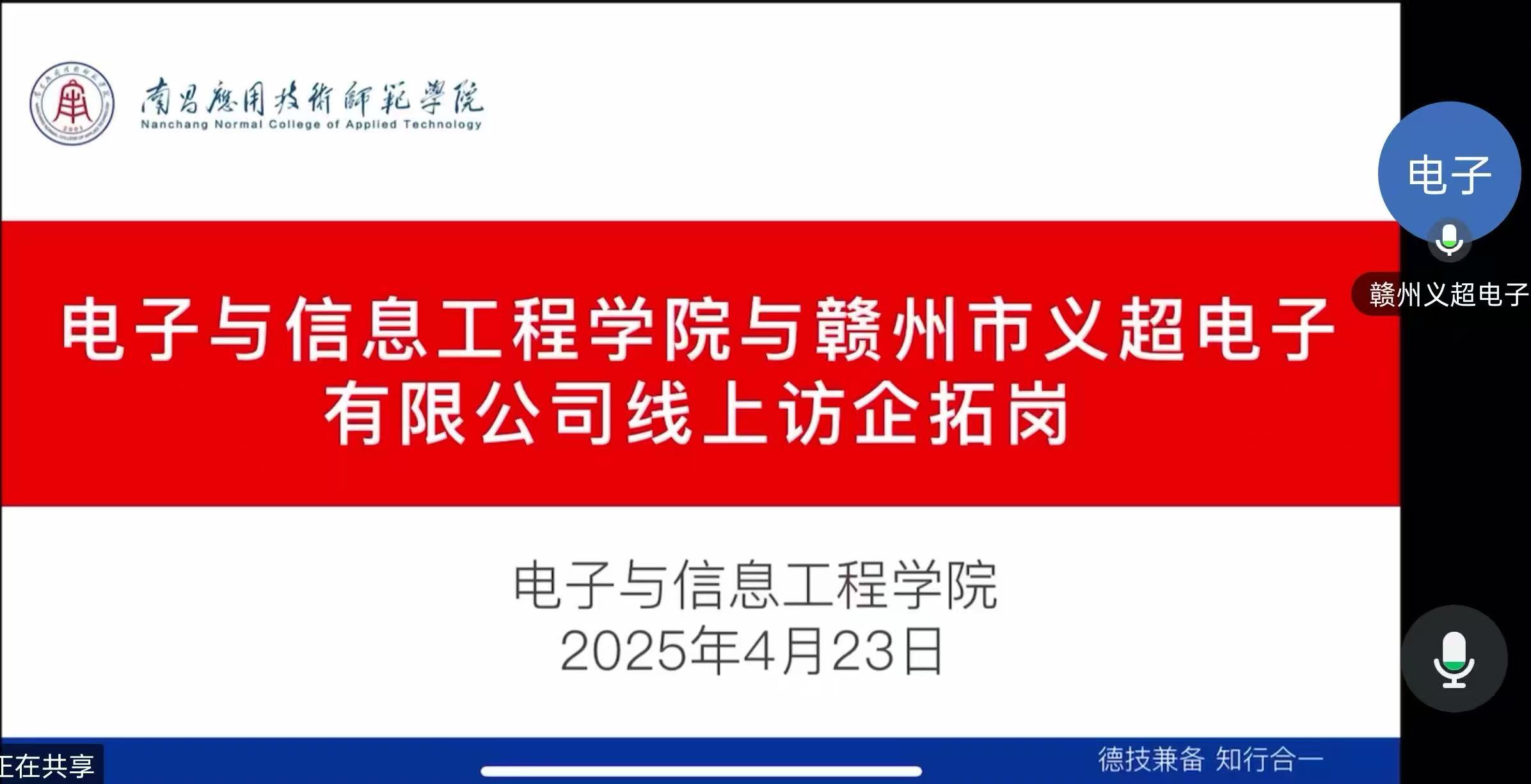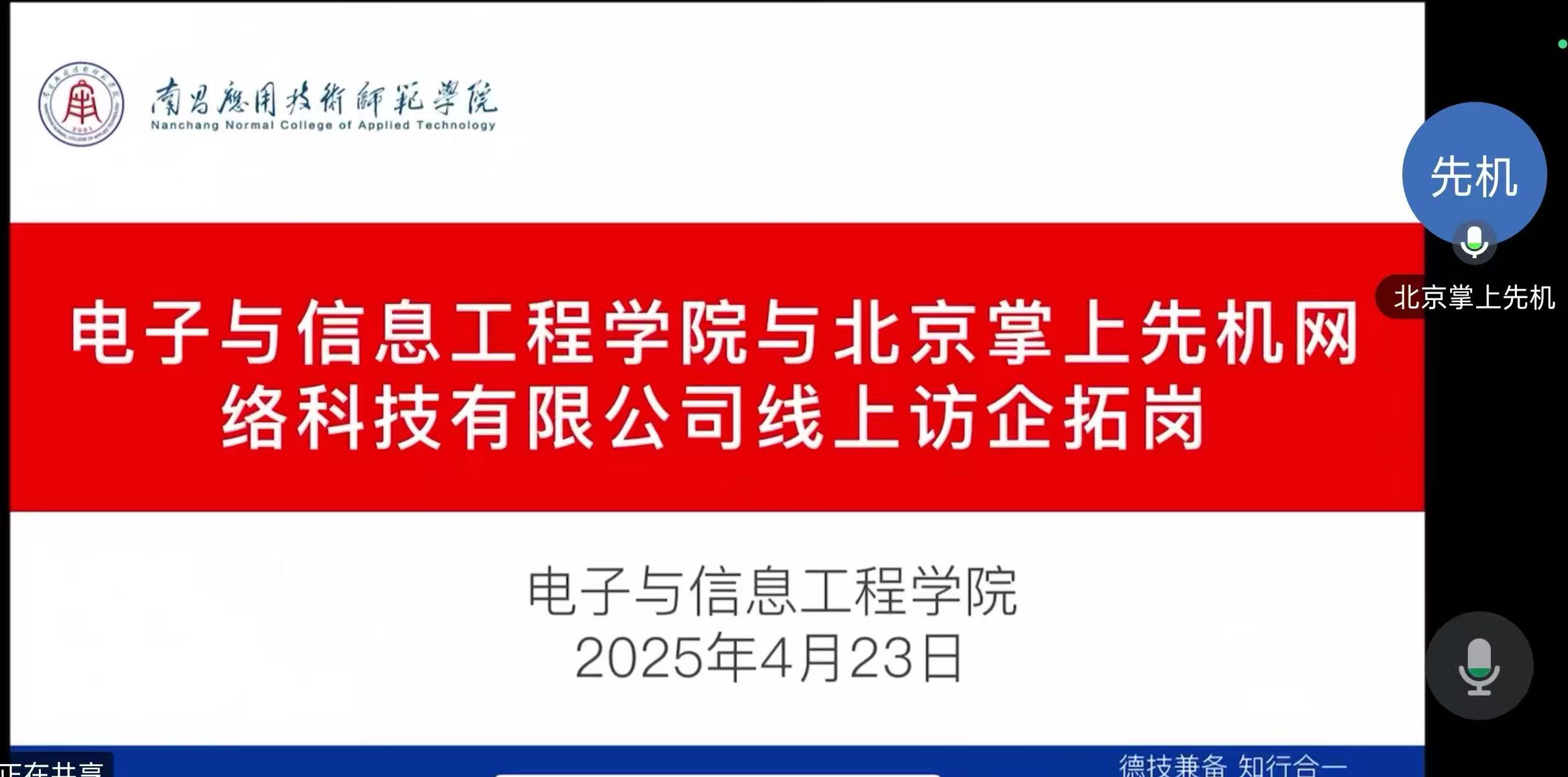 为贯彻落实党中央、国务院关于“稳就业”、“促就业”工作部署,按照教育部、省教育厅关于“访企拓岗”促就业专项行动工作要求,深入了解企业需求、挖掘实习就业岗位,全力促进毕业生更高质量就业,350vip浦京集团官网积极开展访企拓岗专项行动,院长魏艳平于4月23日通过线上视频会议与北京掌上先机网络科技有限公司、赣州市义超电子有限公司、江西引力节拍文化传媒有限公司、浙江京鸿供应链管理有限公司进行洽谈。