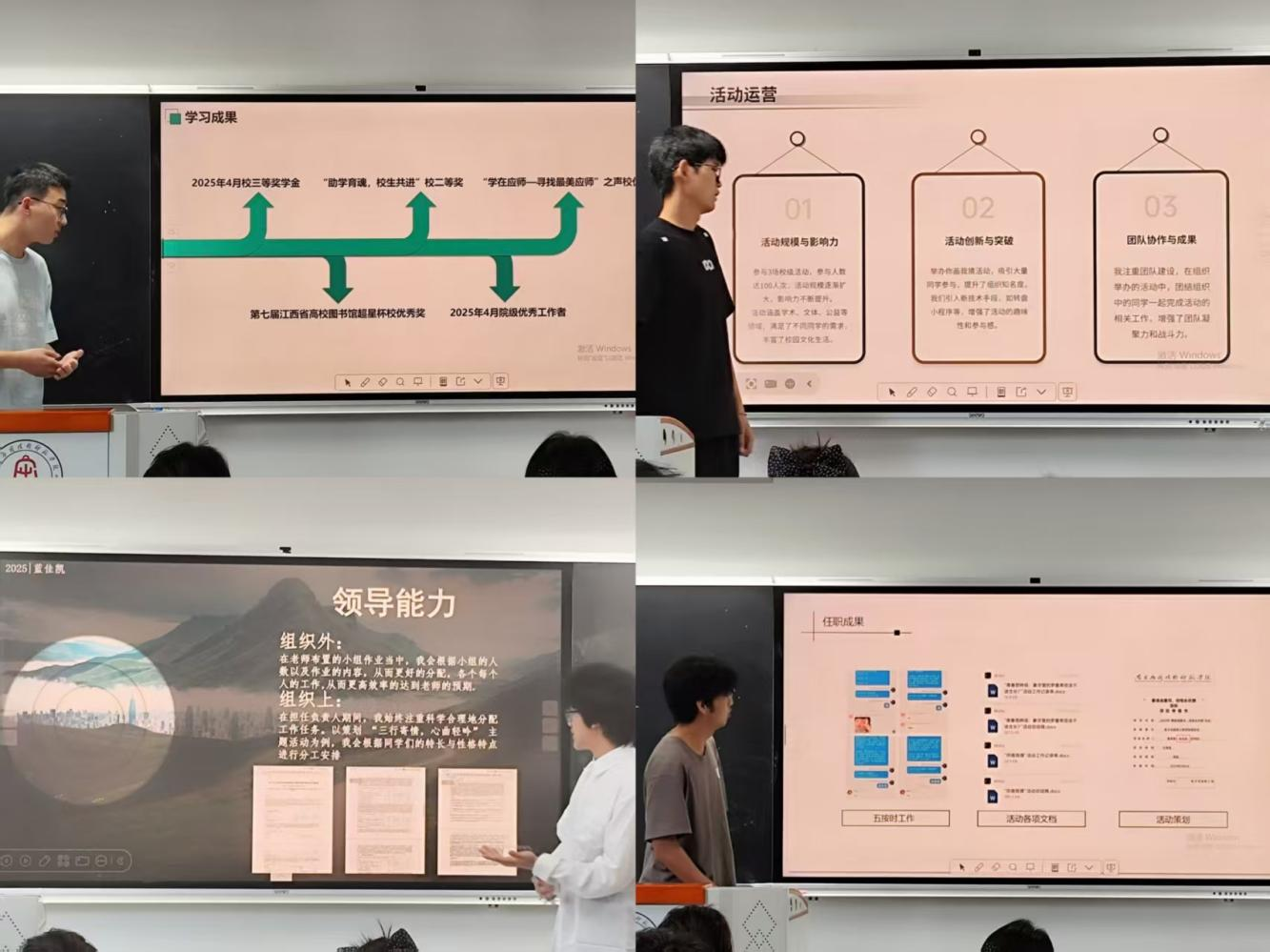随后,换届选举环节正式开始。参与竞选的同学们依次上台,结合精心准备的 PPT,从个人优势、工作规划、对中心发展的展望等方面进行精彩的竞选演讲。他们或沉稳自信,或激情洋溢,表达了对班级事务管理工作的热爱与责任担当,展现出为学院和同学服务的坚定决心。现场评委根据候选人的表现进行提问和打分,秉持公平、公正、公开的原则,最终选举出新一届班级事务管理中心干部。