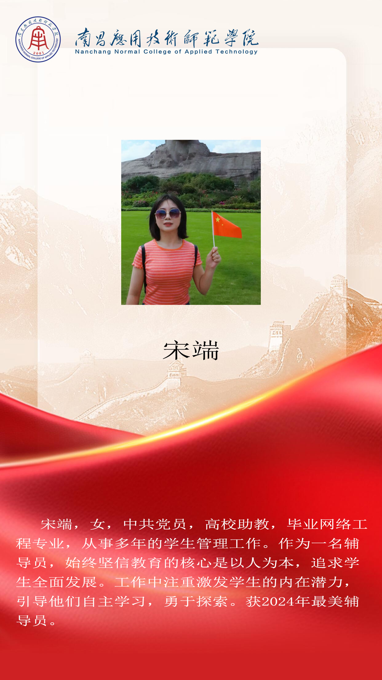 先进典型 优秀毕业生 优秀学生风采 优秀教职工 您现在的位置是:首页 > 先进典型 > 优秀教职工 宋端 最美辅导员 管理员2025-06-16610 上一篇 龙少帅 先进工作者 下一篇 张扬 工程技术系主任