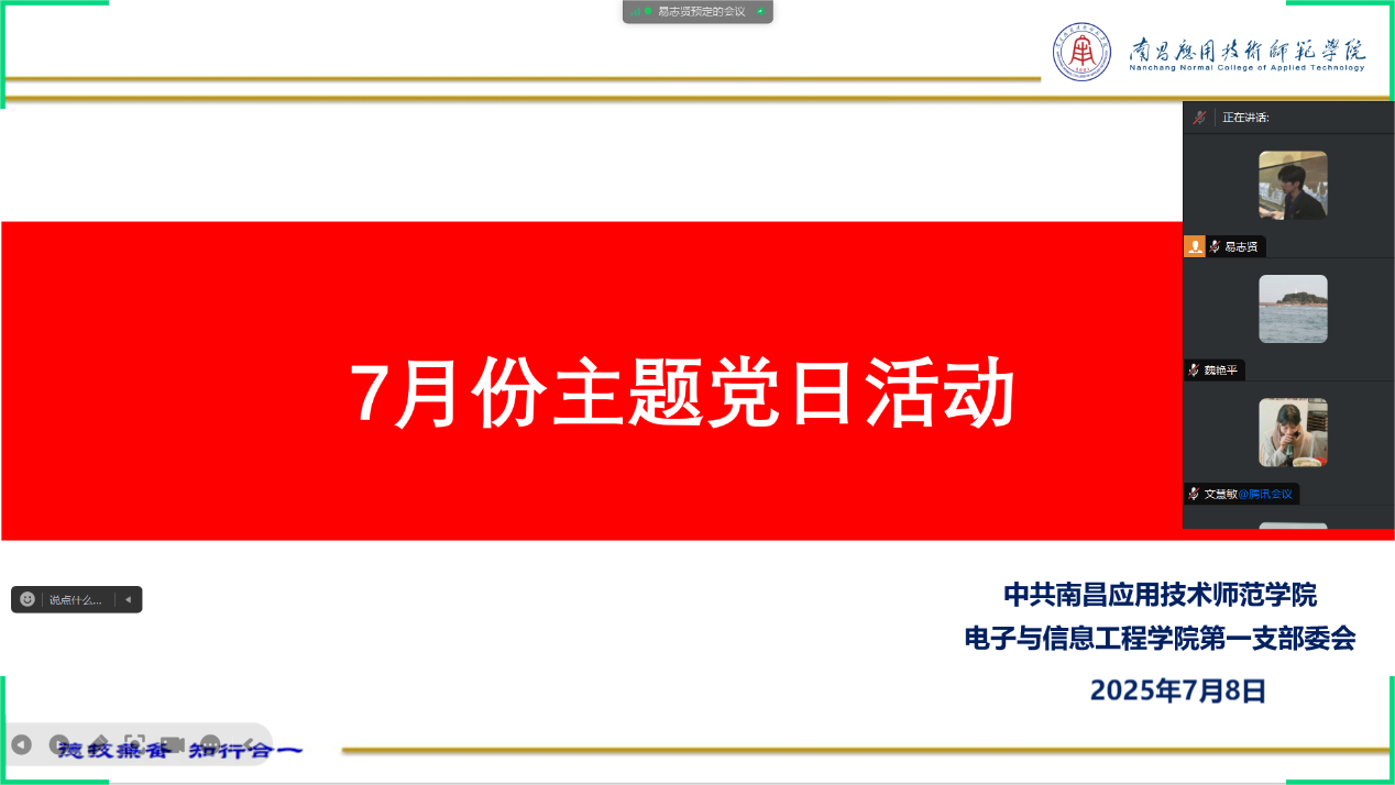 为庆祝中国共产党成立104周年,弘扬伟大建党精神,结合深入贯彻中央八项规定精神学习教育。350vip浦京集团官网第一支党部于7月8号开展7月主题党日活动。此次活动由党支部书记魏艳平主持,全体党员参加。