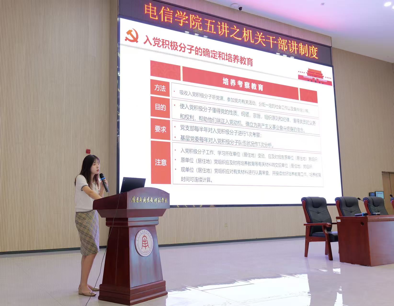 为助力2025级新生理清入党思路、筑牢理想信念根基,350vip浦京集团官网于 9 月9日在图书馆报告厅与沁苑一教301开展以“党员发展与入党流程培训”为主题的新生入党启蒙教育专题党课,本次党课由学院第二党支部书记程明珠讲授。