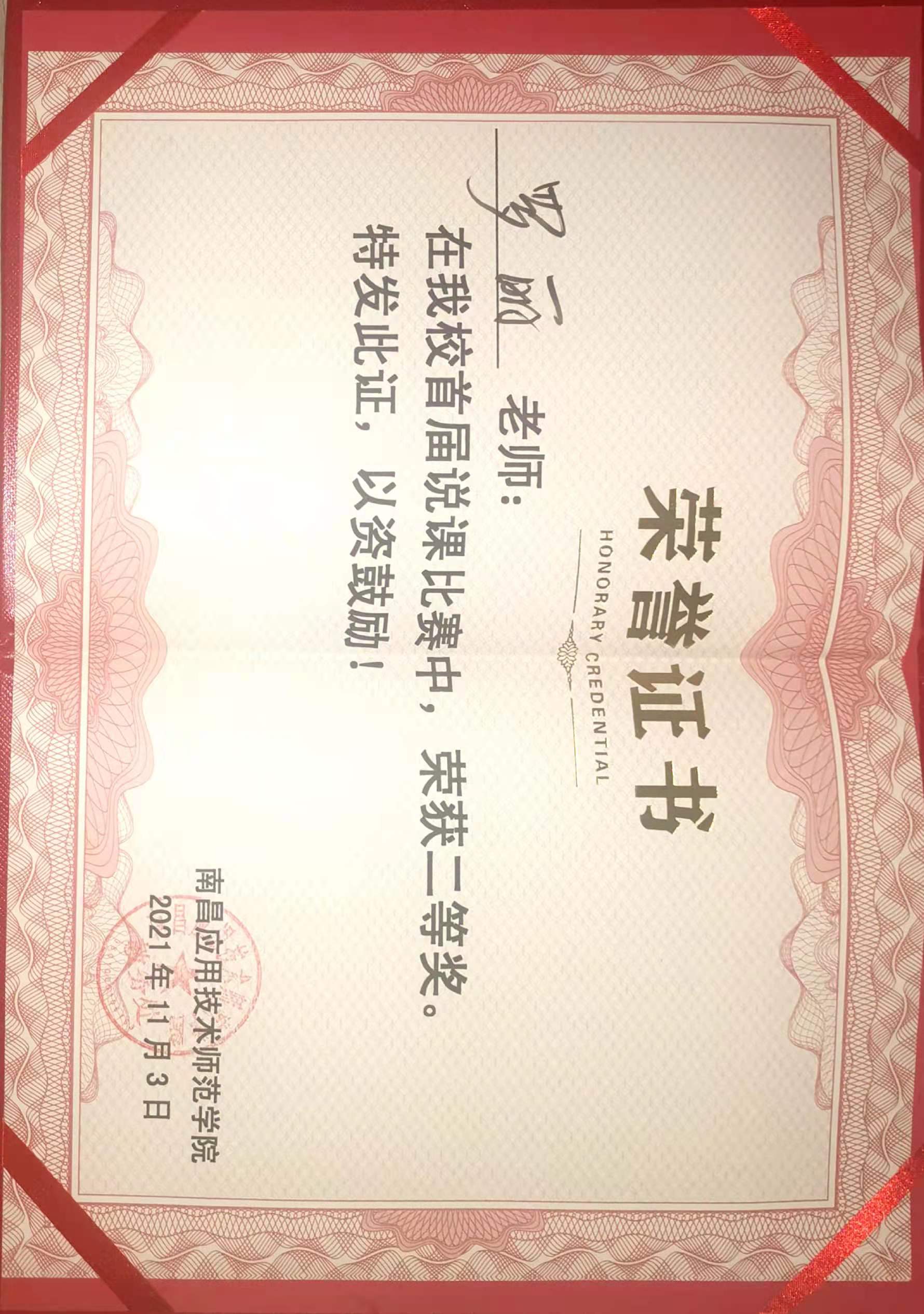 11月3日,在350vip浦京集团官网首届教师说课比赛中,浦京集团官网罗丽老师获350vip浦京集团官网首届说课比赛二等奖,这是学校转设以来,浦京集团官网专业教师获得的首个校级奖励,实现了该项赛事获奖零的突破!